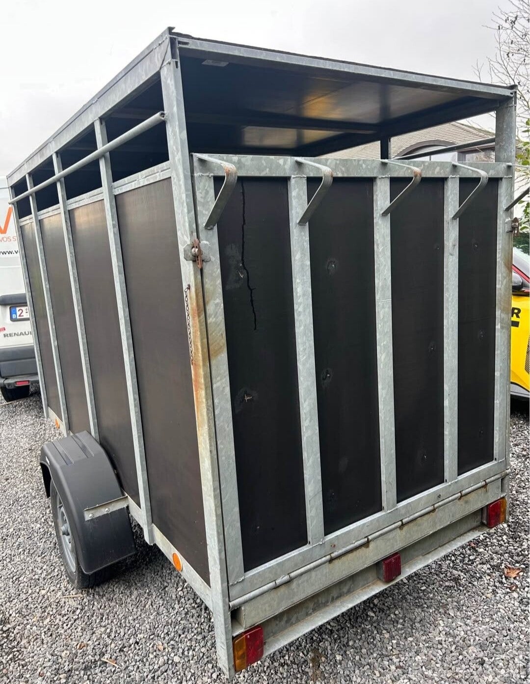 Remorque fermé simple essieux.